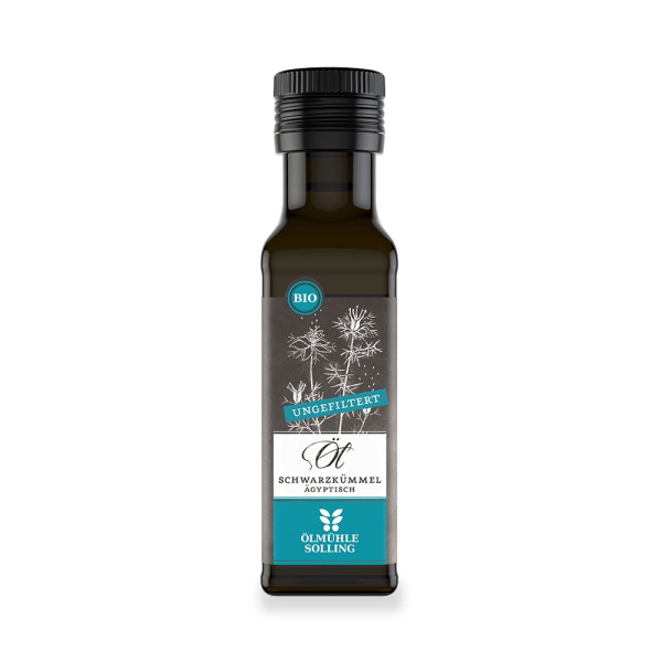 Dieses ungefilterte Bio-Schwarzkümmelöl wird aus ägyptischen Schwarzkümmelsamen in der Ölmühle Solling mühlenfrisch kaltgepresst. Da das Öl nach der schonenden Pressung nicht gefiltert wird, enthält es noch alle wertvollen Trüb- und Schwebstoffe. Zudem ist es reich an ätherischen Ölen und Fettbegleitstoffen. Im Vergleich zum gefilterten Schwarzkümmelöl ist das ungefilterte Öl dickflüssiger und weist zudem einen intensiveren Geschmack auf.Seit über 20 Jahren wird in der Ölmühle Solling mühlenfrisches Schwarzkümmelöl aus biologisch angebauten und voll ausgereiften ägyptischen Schwarzkümmelsamen hergestellt. In ungefilterter Form bietet die Ölmühle die Kostbarkeit aus Ägypten seit diesem Frühjahr an. Das ungefilterte Schwarzkümmelöl zeichnet sich durch eine dunklere Farbe und einen kräftigeren, leicht scharfen Geschmack aus, im Sediment sind kostbare Stoffe enthalten, die normalerweise herausgefiltert werden. Im Schwarzkümmelöl dominiert die essenzielle, zweifach ungesättigte Linolsäure. Der hohe Anteil ätherischer Öle, Bitter- und Gerbstoffe begründen die Beliebtheit des Schwarzkümmelöls für eine Vielzahl von Anwendungen.