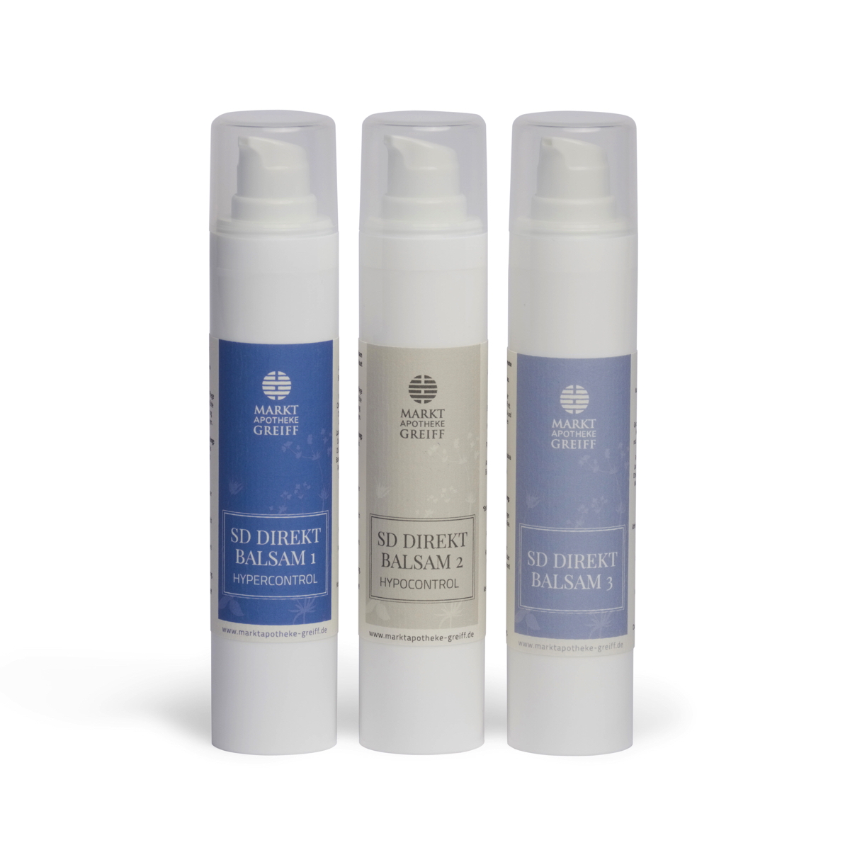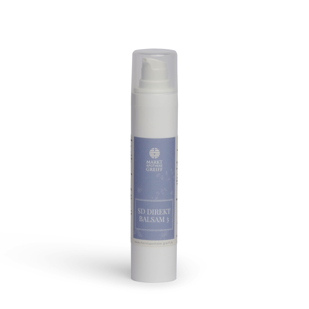 Der SD-Direktbalsam Nr. 3.1 kann bei einer Schilddrüsen-Unterfunktion therapiebegleitend angewendet werden. Eine Hausspezialität Ihrer Markt-Apotheke Greiff mit homöopathisch potenziertem Organpräparat Thyreoidea in der Potenz D5, D6 und 100 % reinen ätherischen Ölen.